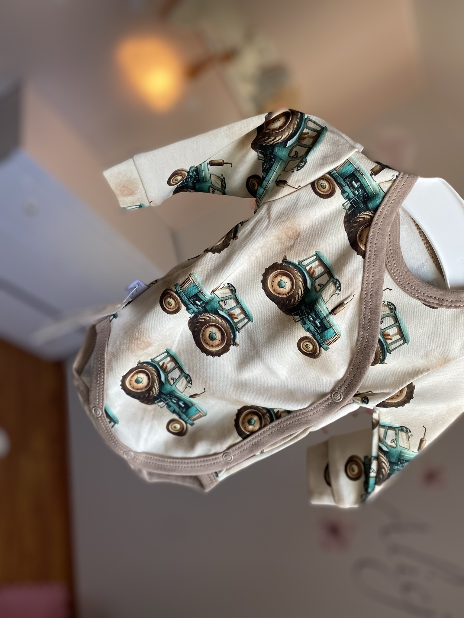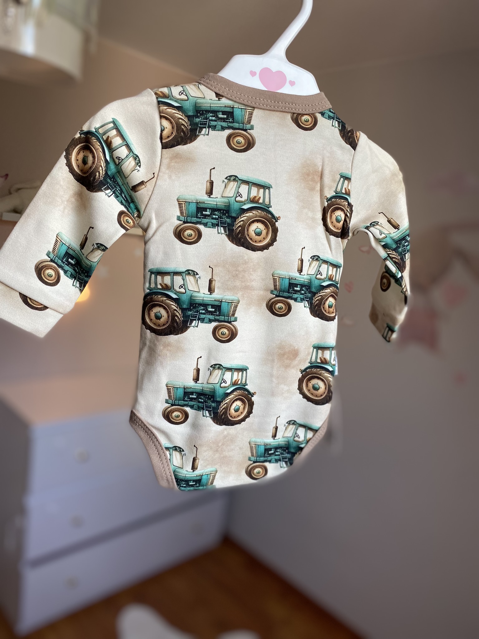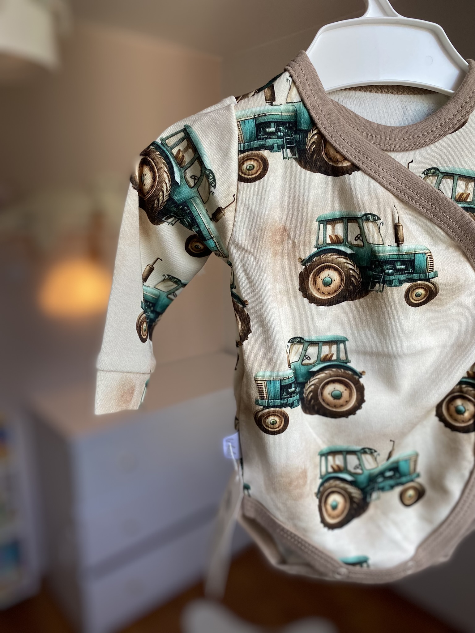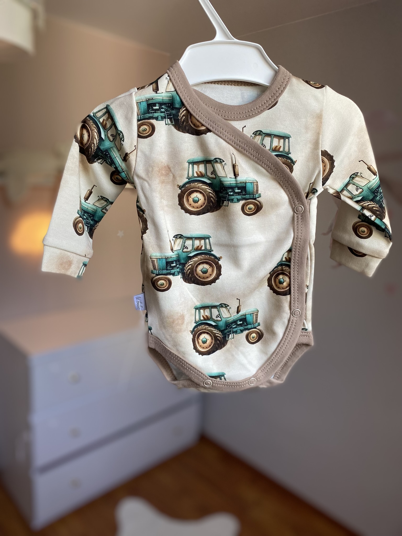 Body niemowlęce kopertowe – Traktorki na beżu