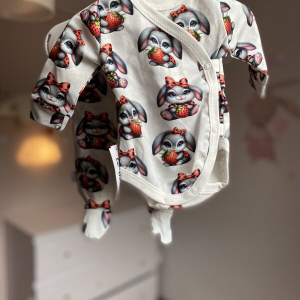 Wzór Króliczka Marzyciela to świetna propozycja dla dziewczynki, która od początku swojej przygody ze światem może mieć garderobę pełną uroku i wyjątkowych detali. Body doskonale komponuje się z legginsami w pastelowych odcieniach różu, beżu czy szarości, tworząc subtelne i estetyczne stylizacje.