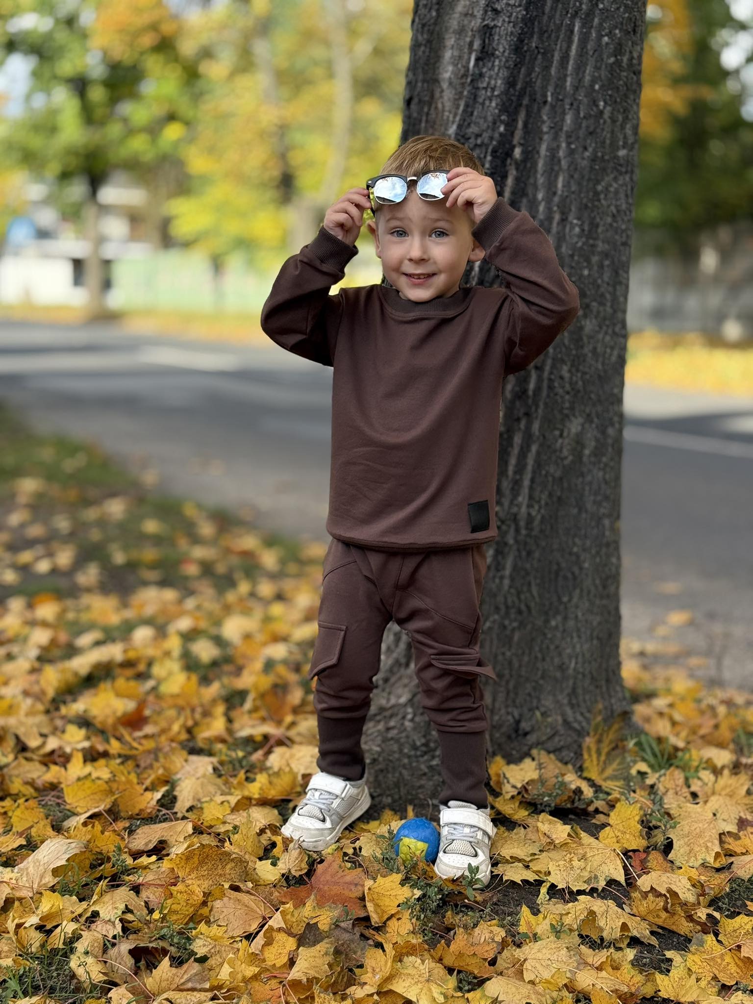 Komplet dresowy dla chłopca – Czekoladowa bluza i spodnie baggy