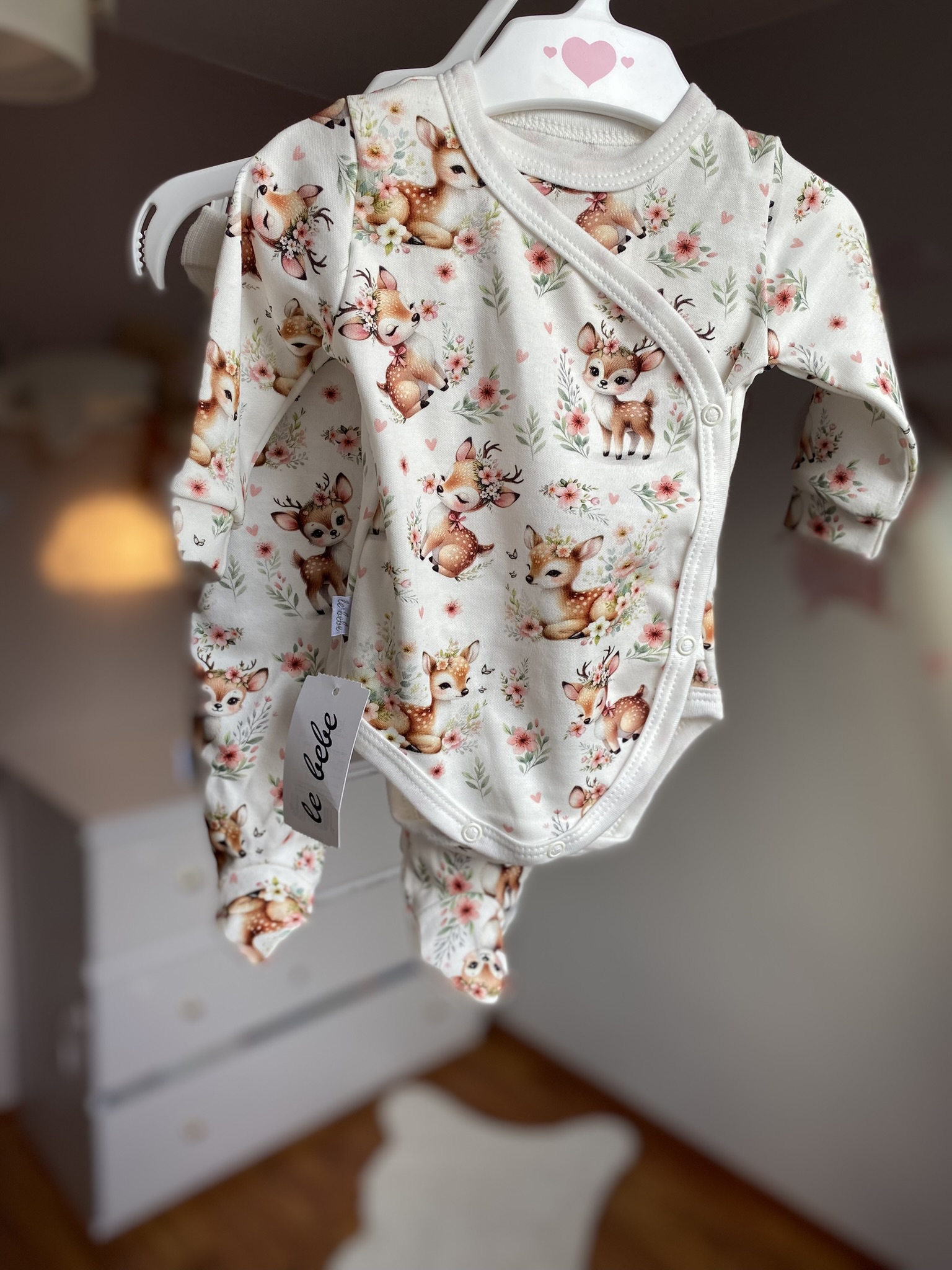 Jeśli szukasz połączenia stylu, funkcjonalności i delikatnego wzornictwa, Komplet niemowlęcy – Sarenki na polanie będzie strzałem w dziesiątkę.