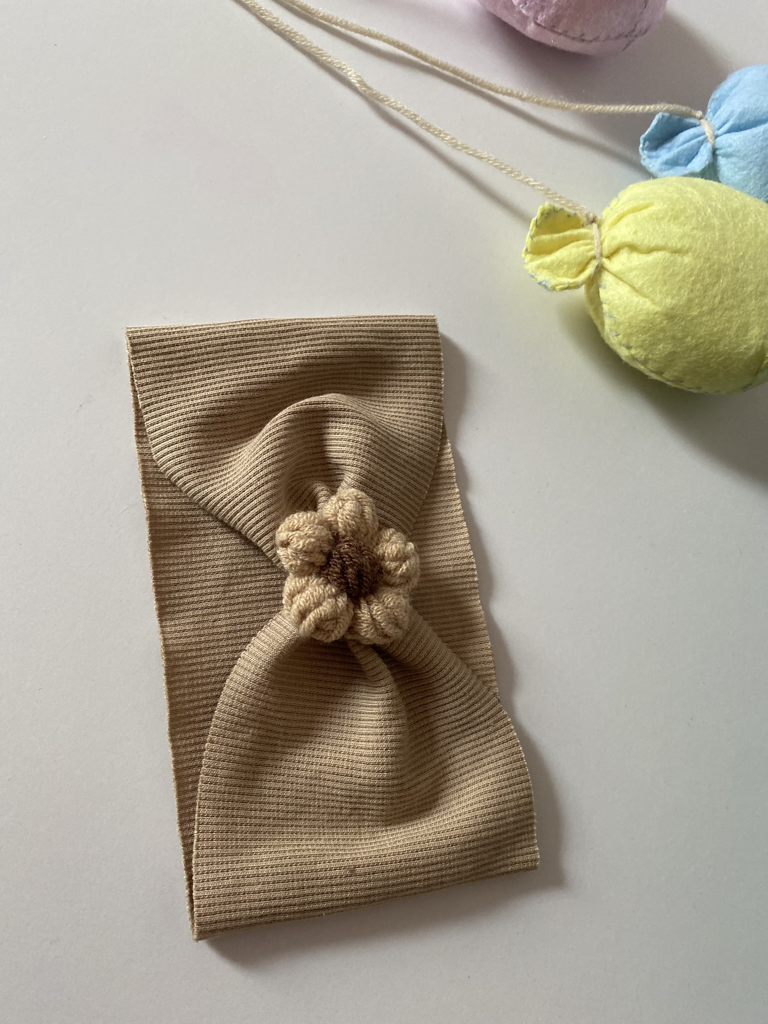 Opaska z kwiatkiem 3D – Cappucino