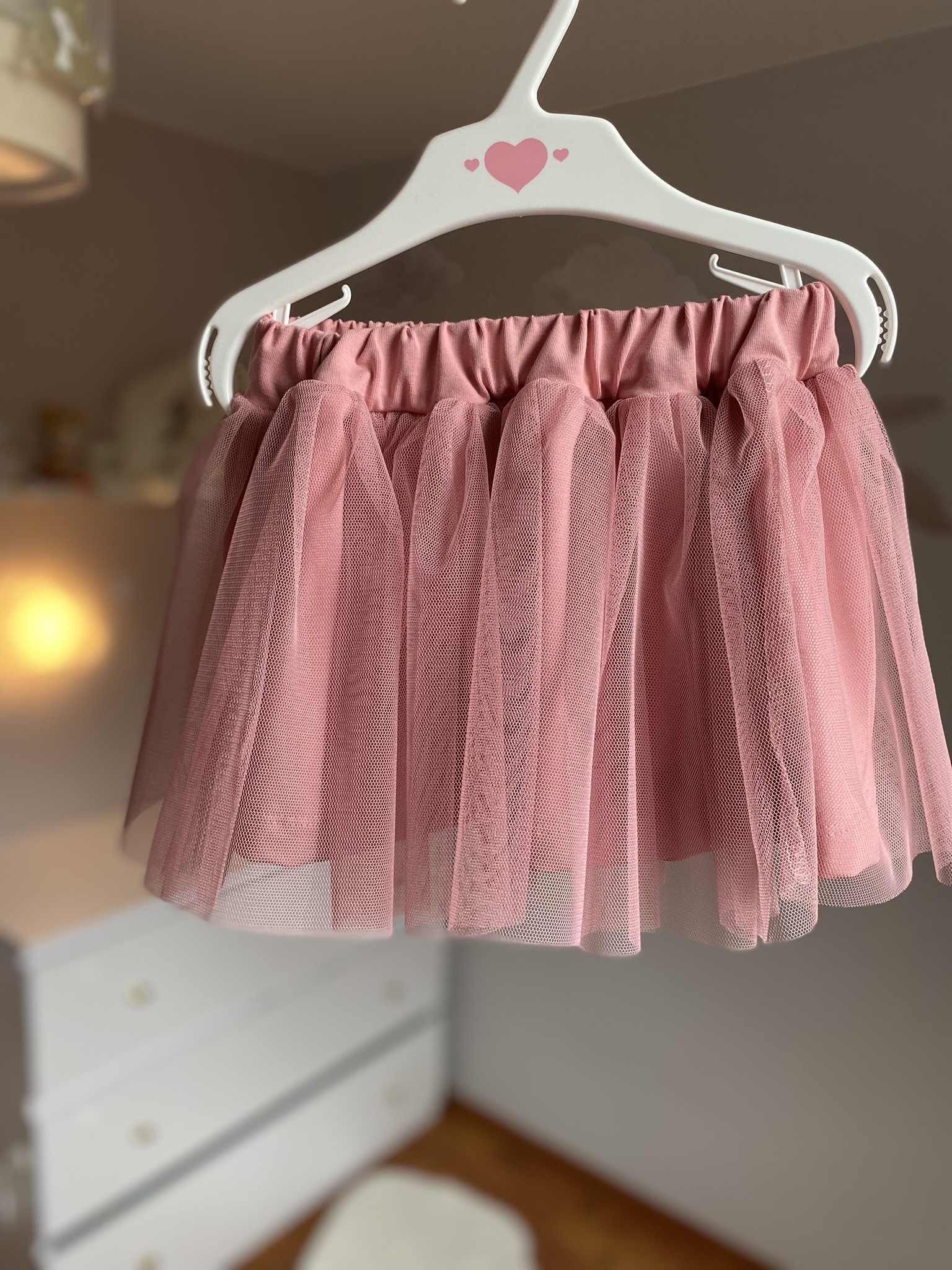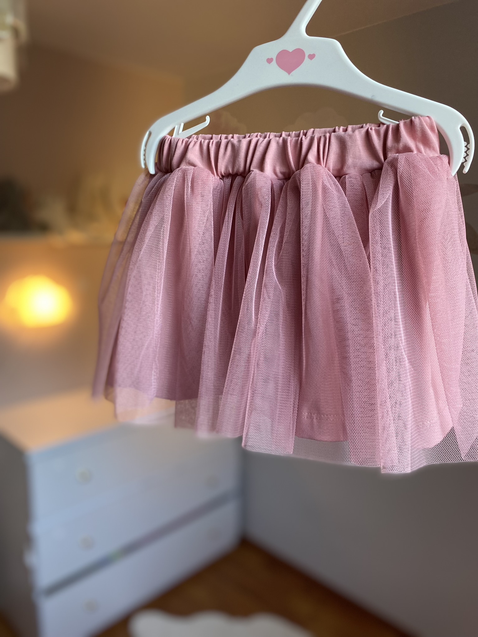 Pastelowy, różowy odcień spódniczki dodaje jej niezwykłej delikatności i dziewczęcego uroku. To kolor, który pięknie komponuje się zarówno z eleganckimi sweterkami, jak i prostymi t-shirtami. Spódniczka świetnie prezentuje się w ruchu — wiruje przy każdym obrocie i podskoku, co z pewnością zachwyci każdą małą modnisię.